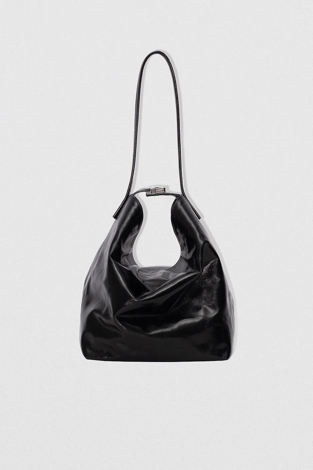 Maxi Bea Black Creased Calf Leather Hobo Bag