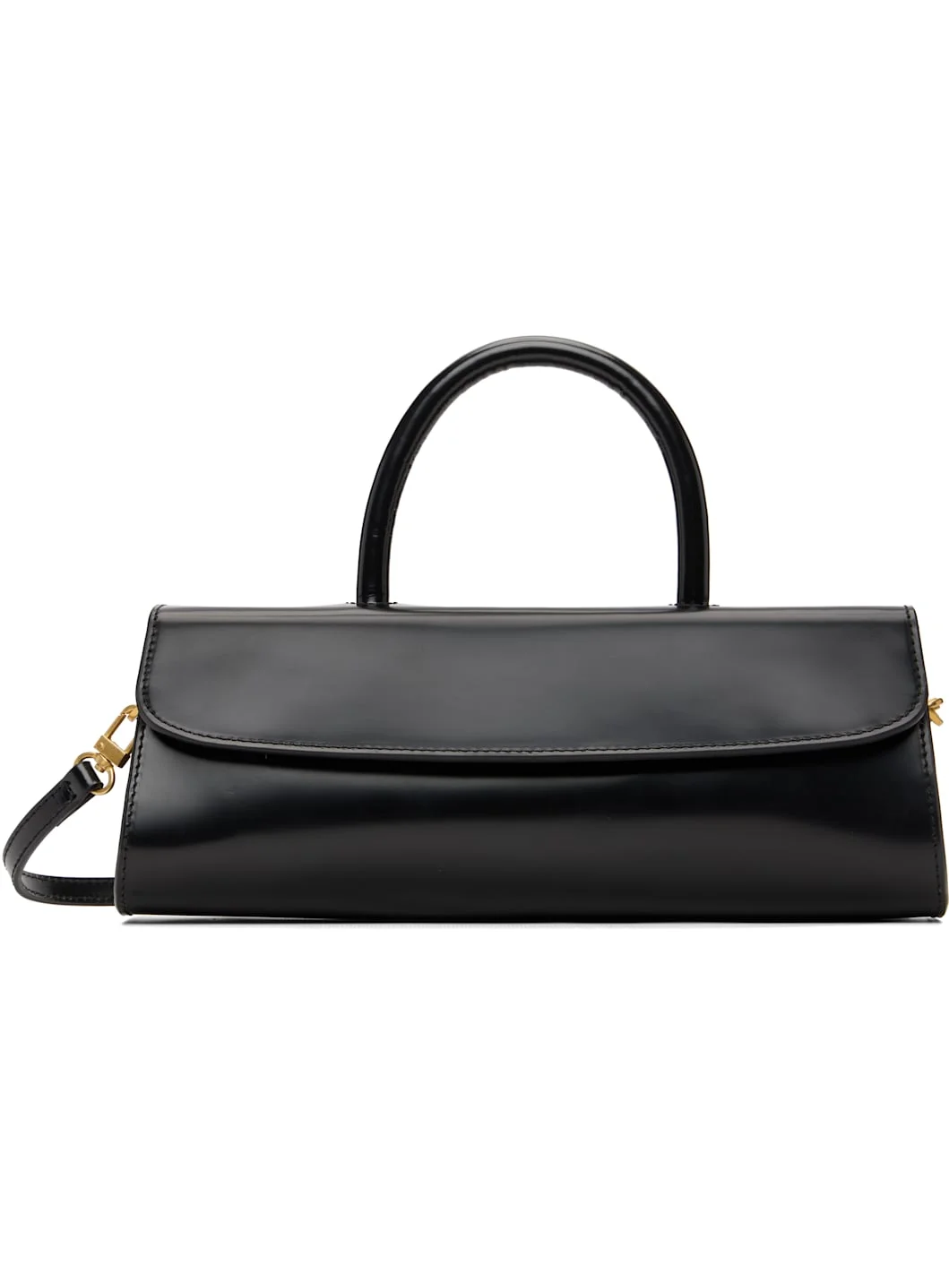 Patent leather top handle bag. · Rolled carry handle · Adjustable and detachable crossbody strap · Magnetic press-stud flap · Card slot at interior · Microsuede lining · H4" x W10" x D3" Supplier color: Black Leather. Made in Bulgaria 261289F046000