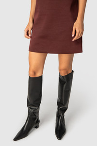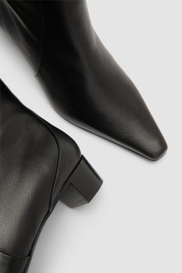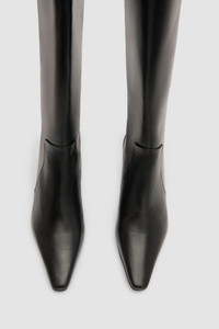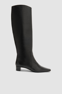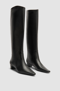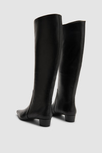 Nappa leather knee-high boot featuring a stacked 3.5cm block heel and a pointed square toe. Free of closures for pull-on ease. DETAILS - Stacked block heel - Heel height: 3.5 cm - Pointed square toe - Pull-On - Made in Portugal SIZE AND FIT Fits true to size. Italian/European sizing.