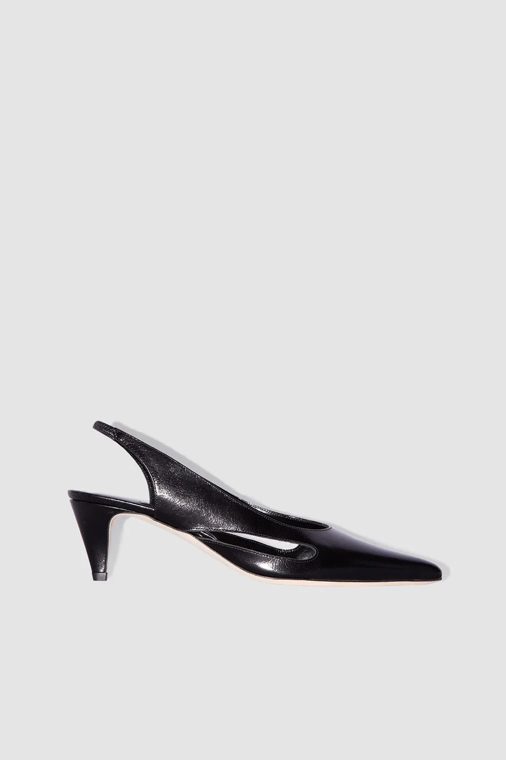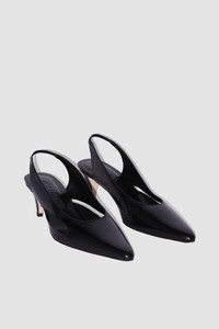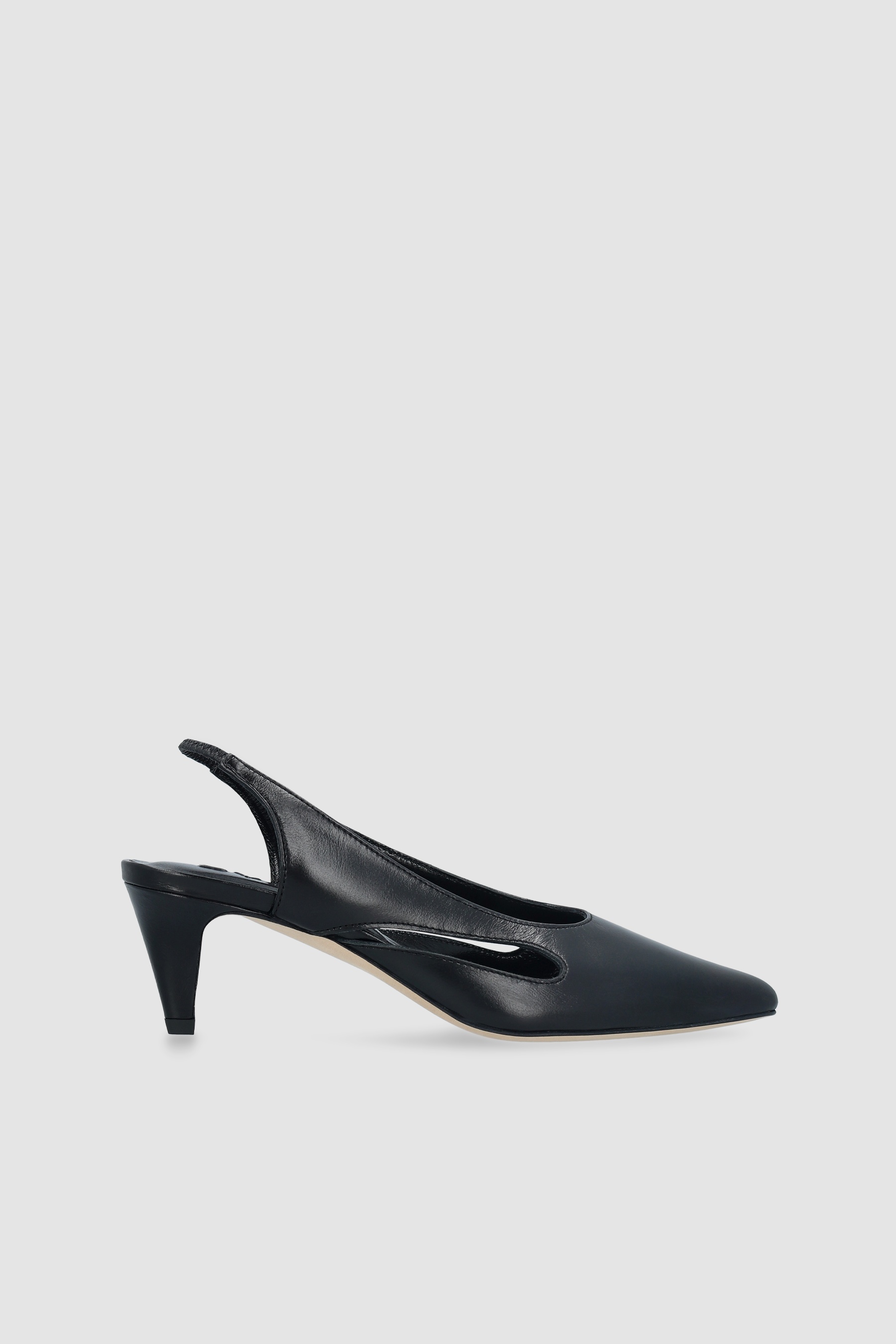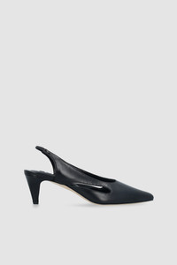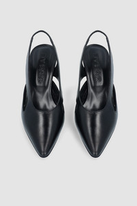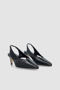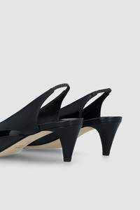 Creased calf leather slingback pump with a 6 cm covered conical heel and elasticated back strap. Designed with a side opening and pointed toe. Made from LWG-certified leather. DETAILS - Leather slingback pump - Covered conical heel - Heel height: 6 cm - Elasticated back strap - Side opening - Pointed toe - Made in Bulgaria SIZE AND FIT Fits true to size. Italian/European sizing