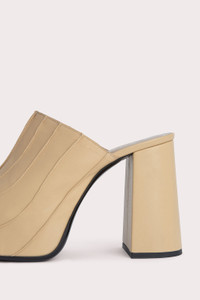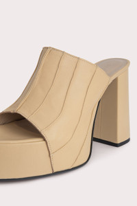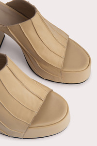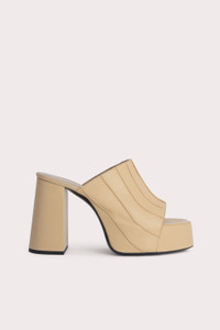 The Brad sandal has a rounded-toe silhouette shaped with a chunky sole and a block heel that tapers at the base. Made of smooth Italian cowhide, the upper is lasted over the covered XXL platform giving the style its distinctive look.