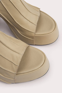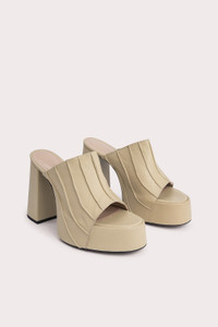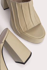 The Brad sandal has a rounded-toe silhouette shaped with a chunky sole and a block heel that tapers at the base. Made of smooth Italian cowhide, the upper is lasted over the covered XXL platform giving the style its distinctive look. DETAILS • Cowhide leather • Leather-covered heel and platform • Heel height: 12 cm • Front platform height: 4 cm • Decorative seaming • Rounded toe • Made in Portugal CARE At BY FAR we carefully select all materials used for our products. Please handle with care for longer product life. • Avoid overexposure to light, heat and humidity • Avoid contact with rough and/or abrasive surfaces • Do not use solvents and excessive or prolonged rubbing, as this could damage the product • Clean with a soft, dry cloth • Store your BY FAR product in its original dust bag You can find more information at Product Care. SIZE AND FIT Fits true to size. Italian/European sizing