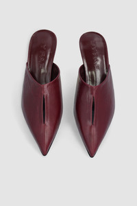 Eel embossed leather mules with a 5 cm covered sculpted kitten heel and a delicate slit opening at the top. Finished with a pointed toe. Made from LWG-certified leather. DETAILS - Leather mule - Covered sculpted kitten heel - Heel height: 5 cm - Delicate slit opening at the top - Pointed toe - Made in Bulgaria SIZE AND FIT Fits true to size. Italian/European sizing