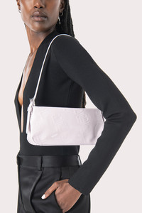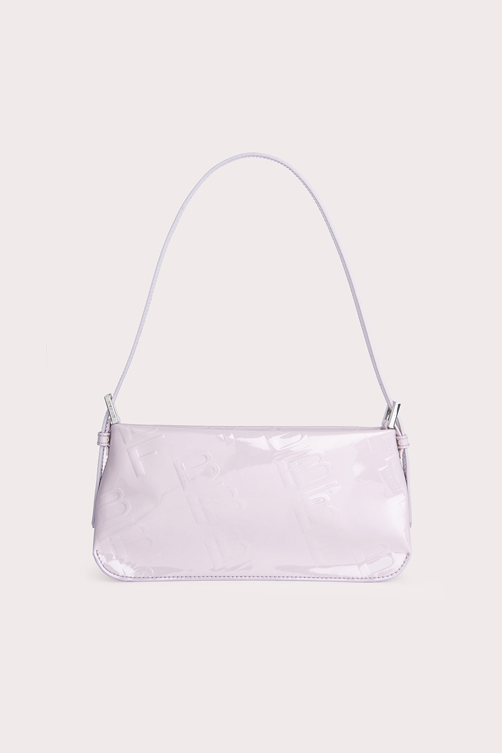 BY FAR’s ‘Dulce’ shoulder bag has a classic baguette silhouette, completed with an adjustable leather strap and zip closure. Made of patent leather, the accessory is accented by the diagonal BF logo motif. DETAILS • Cowhide leather exterior • Adjustable leather strap • Branded hardware • Zip closure • Inside pocket • Cotton lining • Made in Bulgaria CARE At BY FAR we carefully select all materials used for our products. Please handle with care for longer product life. • Avoid use in very humid conditions • Do not use solvents and excessive or prolonged rubbing, as this could damage the product • Clean with a soft, dry cloth • Store your BY FAR product in its original dust bag You can find more information at Product Care. SIZE AND FIT • Depth – 5.5cm • Height – 12cm • Width – 26cm • Strap length - 53 cm • Handle drop - 25 cm