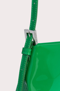 BY FAR’s ‘Dulce’ shoulder bag has a classic baguette silhouette, completed with an adjustable leather strap and zip closure. The accessory is masterfully crafted in lustrous patent leather, a material that is distinctive in the brand’s collections. DETAILS Cowhide leather exterior Adjustable leather strap Branded hardware Zip closure Inside pocket Cotton lining Made in Bulgaria CARE At BY FAR we carefully select all materials used for our products. Please handle with care for longer product life. • Avoid use in very humid conditions • Do not use solvents and excessive or prolonged rubbing, as this could damage the product • Clean with a soft, dry cloth • Store your BY FAR product in its original dust bag You can find more information at Product Care. SIZE AND FIT • Depth – 5.5cm • Height – 12cm • Width – 26cm • Strap length - 53 cm. • Handle drop - 25 cm.