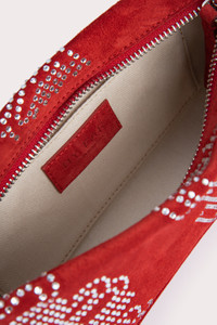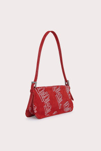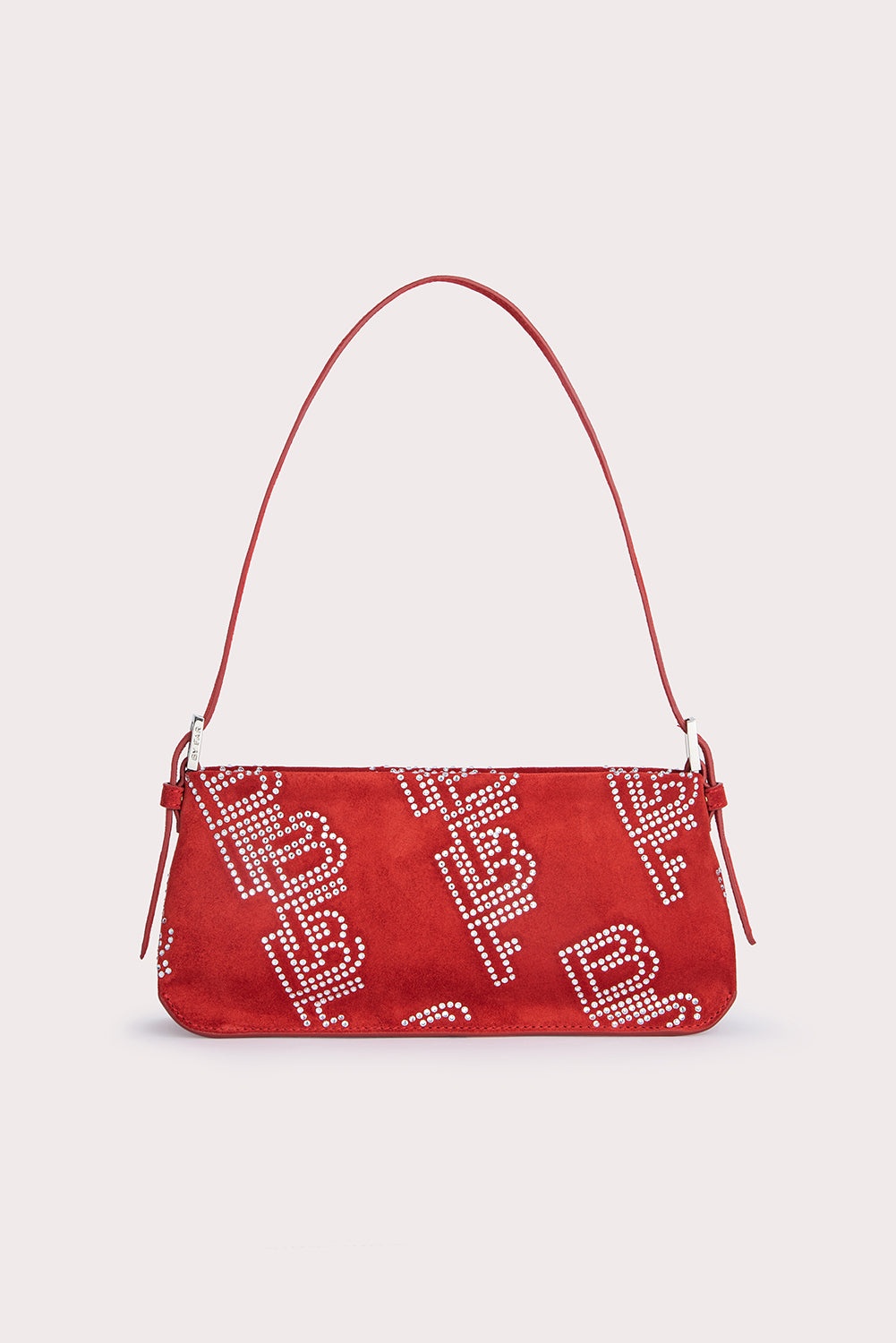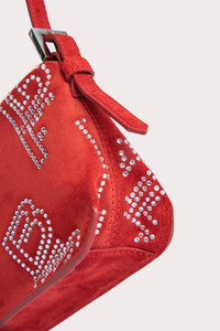 BY FAR’s ‘Dulce’ shoulder bag has a classic baguette silhouette, completed with an adjustable leather strap and zip closure. Made of suede leather, the accessory is accented by the diagonal BF logo motif, debuting in crystals. DETAILS Calfskin leather exterior Adjustable leather handle BF crystal embellishments Branded metal hardware Zip closure Cotton lining Single inside pocket Made in Bulgaria CARE At BY FAR we carefully select all materials used for our products. Please handle with care for longer product life. • Avoid use in very humid conditions and against light coloured garments • Do not use solvents and excessive or prolonged rubbing, as this could damage the product • Clean with a specialist suede brush or refer to a specialist cleaning service • Store your BY FAR product in its original dust bag You can find more information at Product Care. SIZE AND FIT • Depth – 5.5cm • Height – 12cm • Width – 26cm • Strap length - 53 cm. • Handle drop - 25 cm.