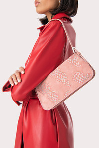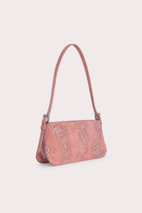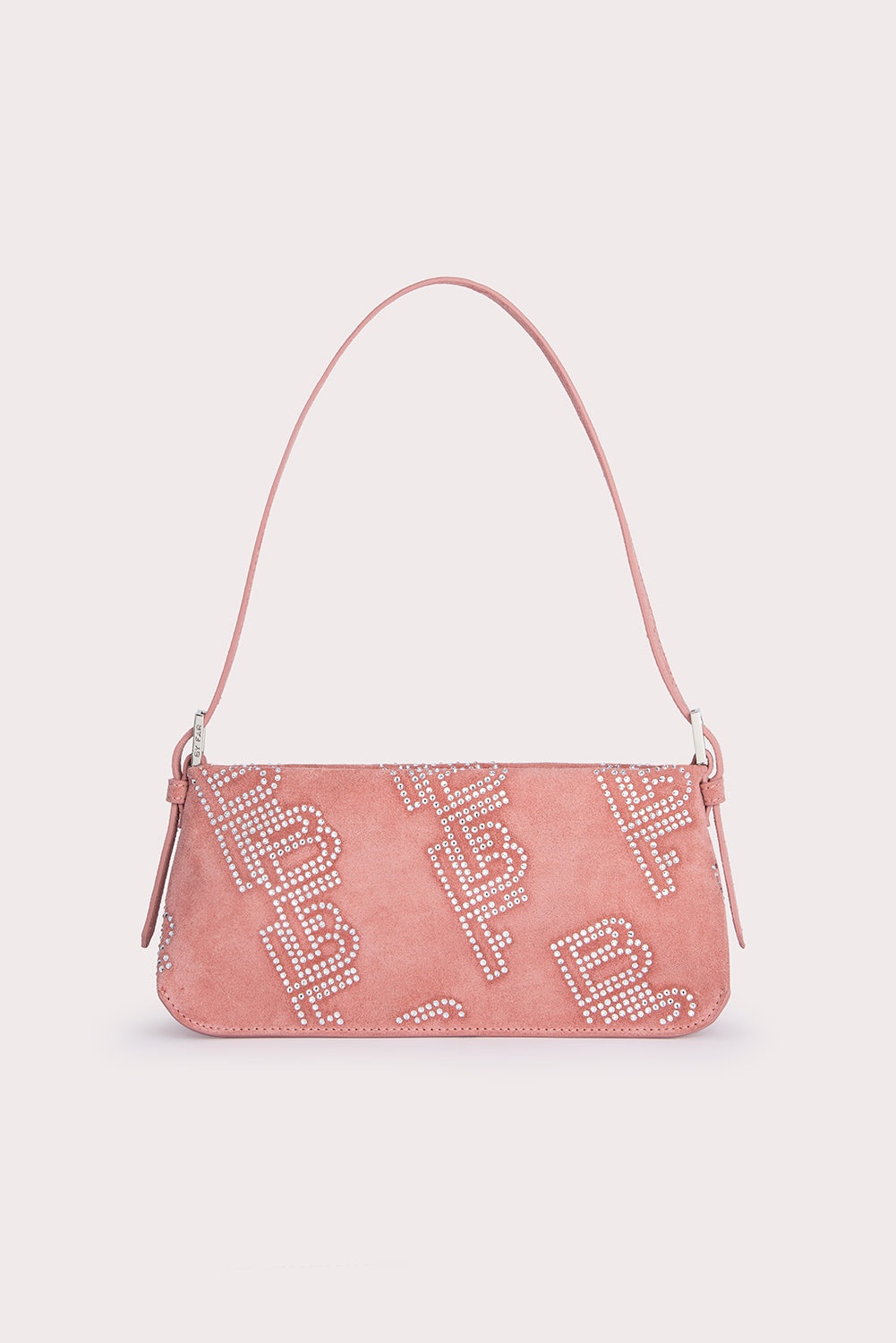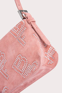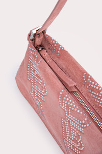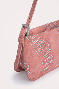 BY FAR’s ‘Dulce’ shoulder bag has a classic baguette silhouette, completed with an adjustable leather strap and zip closure. Made of suede leather, the accessory is accented by the diagonal BF logo motif, debuting in crystals. DETAILS Calfskin leather exterior Crystal embellishments Adjustable leather strap Branded hardware Zip closure Inside pocket Cotton lining Made in Bulgaria CARE At BY FAR we carefully select all materials used for our products. Please handle with care for longer product life. • Avoid use in very humid conditions and against light coloured garments • Do not use solvents and excessive or prolonged rubbing, as this could damage the product • Clean with a specialist suede brush or refer to a specialist cleaning service • Store your BY FAR product in its original dust bag You can find more information at Product Care. SIZE AND FIT • Depth – 5.5cm • Height – 12cm • Width – 26cm • Strap length - 53 cm. • Handle drop - 25 cm.