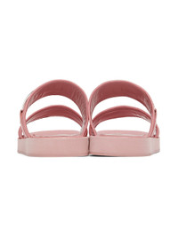 Grained leather slip-on flat sandals in pink. · Layered straps and logo hardware at vamp · Logo embossed at padded leather footbed · Foam rubber midsole · Treaded rubber outsole Supplier color: Pink Upper: leather. Sole: rubber. Made in Portugal 221289F124006