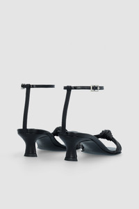 Creased calf leather sandal with a covered 5 cm kitten heel and thin leather toe straps. Features a buckle fastening and a round toe. Made from LWG-certified leather. DETAILS - Leather sandal - Covered kitten heel - Heel height: 5 cm - Buckle fastening - Thin leather toe straps - Round toe - Made in Bulgaria SIZE AND FIT Fits true to size. Italian/European sizing