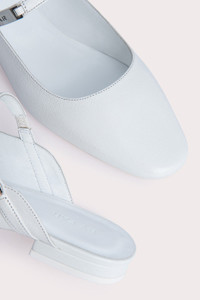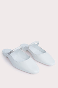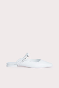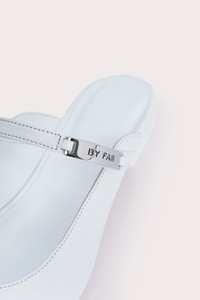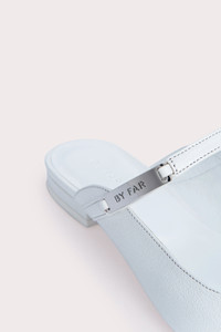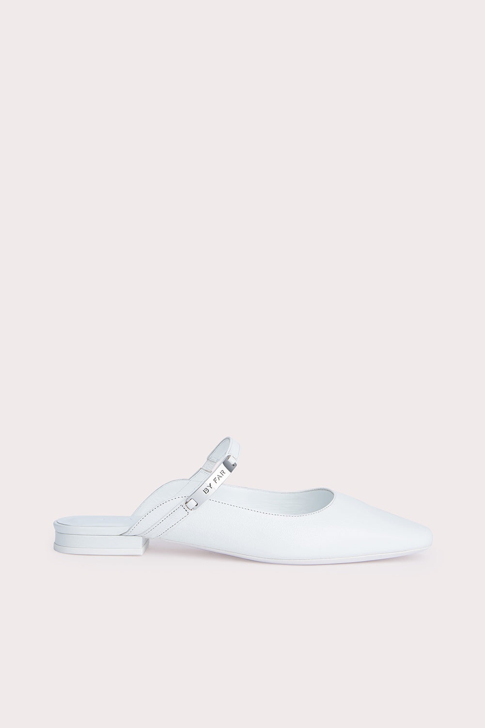 Distinguished by its pointed-toe silhouette, this shiny tonal mule is crafted from soft French goat leather. Set on a low block heel, the contemporary allure of the style is complemented with a branded metal plate that embellishes the slender leather strap near the ankle. DETAILS Slip-on leather mule Grained leather Material: 100% French goat leather Elasticated leather strap Branded hardware in brass material Low block heel Heel height 1 cm Rounded toe Branded tonal leather lining Made in Portugal CARE At BY FAR we carefully select all materials used for our products. Please handle with care for longer product life. • Avoid use in very humid conditions • Do not use solvents and excessive or prolonged rubbing, as this could damage the product • Clean with a soft, dry cloth • Store your BY FAR product in its original dust bag You can find more information at Product Care. SIZE AND FIT Fits true to size. Italian/European sizing