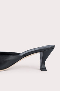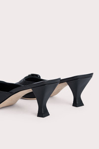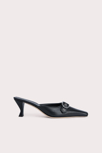 BY FAR’s ‘Evelyn’ mule has a pointed-toe silhouette made of supple lambskin. The design is completed with a sculpted kitten heel and a buckled strap along the upper that creates cool interest.