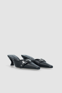 Nappa leather slingback pump with a 6.5 cm sculpted kitten heel and metal hardware on the upper. Designed with an almond toe and a leather-covered heel and made from LWG-certified leather. DETAILS - Leather slingback pump - Sculpted kitten heel, covered in leather - Heel height: 6.5 cm - Metal hardware on the upper - Almond toe - Made in Bulgaria SIZE AND FIT Fits true to size. Italian/European sizing