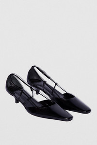 - Leather pumps - Crafted in smooth Italian lambskin with glossy finish - Leather-covered kitten heel - Heel height: 4 cm - Thin adjustable strap - Buckle fastening - Pointed toe - Made in Portugal SIZE AND FIT Fits true to size. Italian/European sizing
