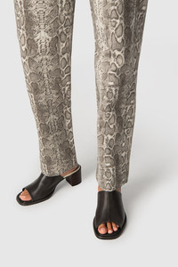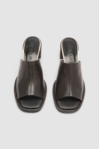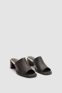 Leather mule with a soft fit and elasticated topline, featuring a stacked 5cm block heel with a dark brown leather border. Designed with contrast piping, a central seam, square toeshape, and a leather-covered toeline border. Finished with a leather sole. DETAILS - Leather mule - Soft fit, elasticated topline - Stacked leather block heel with 3mm border; dark brown on all colourways - Heel height - 5cm - Contrast piping - Central seam - Square toeshape - Leather covered border around the toeline - Leather sole - Made in Bulgaria SIZE AND FIT Fits true to size. Italian/European sizing.