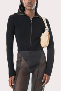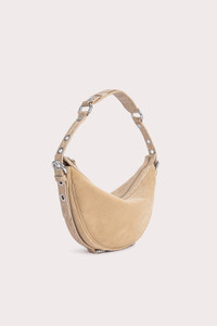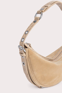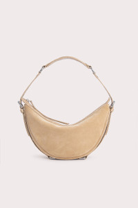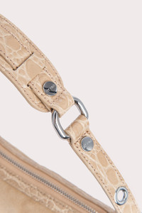 Refined to a structured, crescent shape, the ‘Gib’ bag softly collapses and flatters the body once it is on the shoulder. The style is made of suede leather with a croco embossed leather trim and enhanced by the metal hardware, branded with the BY FAR logo. Features zip closure, cotton lining and an adjustable handle. DETAILS • Cowhide and calfskin leather exterior • Leather shoulder strap • Metal hardware • Branded studs • Zip closure • Cotton lining • Made in Bulgaria CARE At BY FAR we carefully select all materials used for our products. Please handle with care for longer product life. • Avoid use in very humid conditions and against light coloured garments • Do not use solvents and excessive or prolonged rubbing, as this could damage the product • Clean with a specialist suede brush or refer to a specialist cleaning service • Store your BY FAR product in its original dust bag You can find more information at Product Care. SIZE AND FIT • Depth – 5.5cm • Height – 16cm • Width – 31cm • Strap length - 43 cm. • Handle drop - 12 cm.