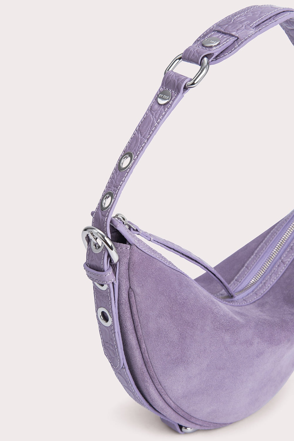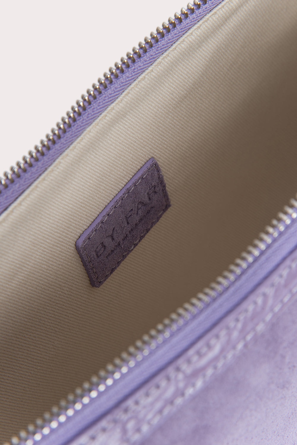 Refined to a structured, crescent shape, the ‘Gib’ bag softly collapses and flatters the body once it is on the shoulder. The style is made of suede leather with a croco embossed leather trim and enhanced by the metal hardware, branded with the BY FAR logo. Features zip closure, cotton lining and an adjustable handle. DETAILS • Cowhide and calfskin leather exterior • Leather shoulder strap • Metal hardware • Branded studs • Zip closure • Cotton lining • Made in Bulgaria CARE At BY FAR we carefully select all materials used for our products. Please handle with care for longer product life. • Avoid use in very humid conditions and against light coloured garments • Do not use solvents and excessive or prolonged rubbing, as this could damage the product • Clean with a specialist suede brush or refer to a specialist cleaning service • Store your BY FAR product in its original dust bag You can find more information at Product Care. SIZE AND FIT • Depth – 5.5cm • Height – 16cm • Width – 31cm • Strap length - 43 cm. • Handle drop - 12 cm.