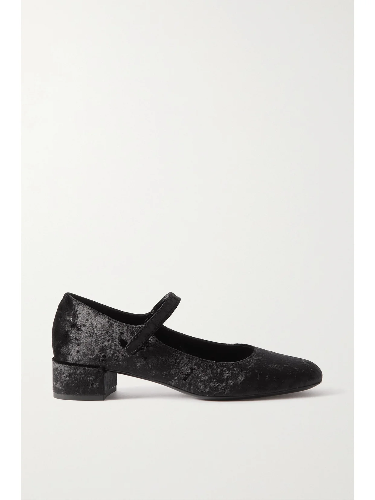 A classic pair of Mary Janes will never go out of style - BY FAR's 'Ginny' version is made from black crushed-velvet and set on comfortable block heels. The thin straps are partially elasticated for a flexible fit.