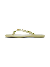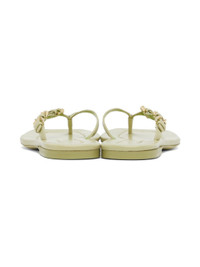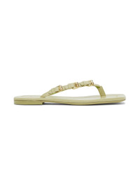 Grained lambskin flat sandals in green. · Open square toe · Pin-buckles at vamp · Leather sole with rubber injection at heel · Gold-tone hardware Supplier color: Olive Lambskin. Made in Portugal 221289F124019