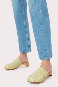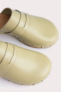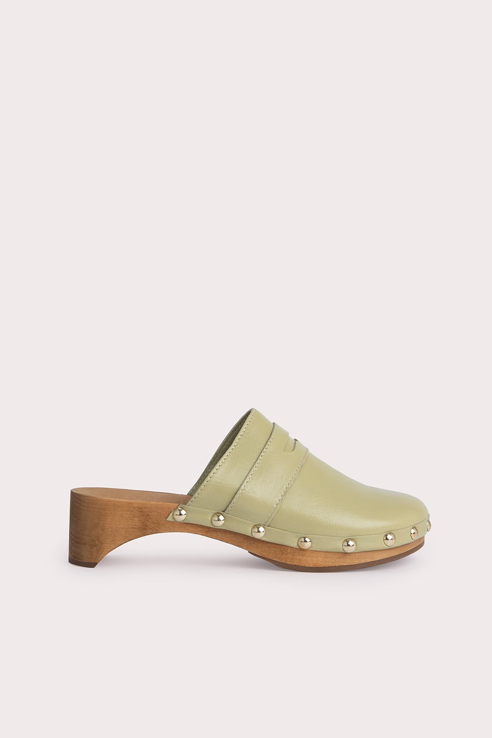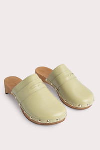 Elevated lines and impeccable craftsmanship meet in this BY FAR interpretation of a classic clog. Made of supple Italian lambskin leather with a glossy finish, the mule is set on a carved wood adorned with gold-toned studs along the edge. DETAILS Lambskin leather Branded wood platform Handcrafted Heel height: 5 cm Gold-toned studs Made in Portugal CARE At BY FAR we carefully select all materials used for our products. Please handle with care for longer product life. • Avoid use in very humid conditions • Do not use solvents and excessive or prolonged rubbing, as this could damage the product • Clean with a soft, dry cloth • Store your BY FAR product in its original dust bag You can find more information at Product Care. SIZE AND FIT Fits true to size. Italian/European sizing