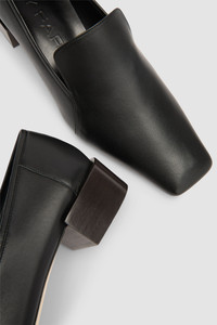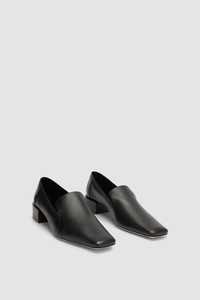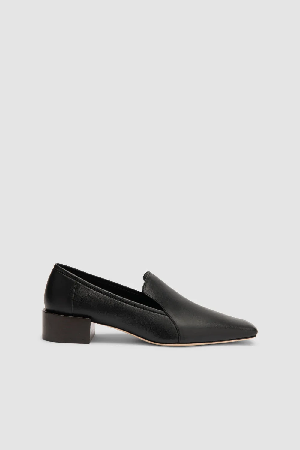 Soft leather loafer with a glove-like fit, featuring a 3cm stacked leather block heel with a tonal 3mm border. Designed with a square toeshape and finished with a leather sole. DETAILS - Soft leather loafer - Super soft glove-like construction - Stacked leather block heel with 3mm border; tonal to upper - Heel height - 3cm - Square toeshape - Leather sole - Made in Portugal SIZE AND FIT Fits true to size. Italian/European sizing.