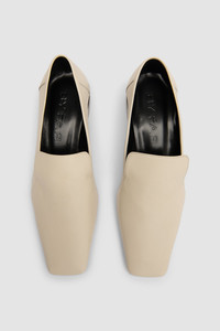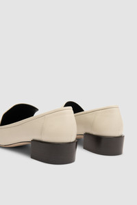 Soft leather loafer with a glove-like fit, featuring a 3cm stacked leather block heel with a tonal 3mm border. Designed with a square toeshape and finished with a sleek leather sole. DETAILS - Soft leather loafer - Super soft glove-like construction - Stacked leather block heel with 3mm border; tonal to upper - Heel height - 3cm - Square toeshape - Leather sole - Made in Portugal SIZE AND FIT Fits true to size. Italian/European sizing.