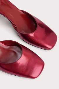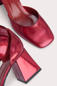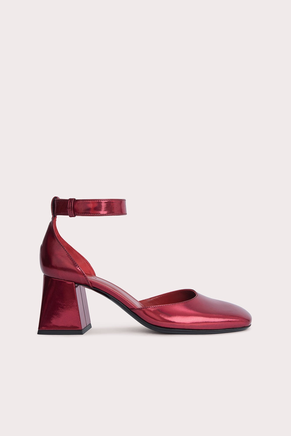 Crafted in shiny iridescent lac, the Judy pump is refined to a curvy cutaway construction designed to reveal the arch of the foot. Its rounded square-toe silhouette is set on a flared block heel and has an adjustable ankle strap with hidden buckle fastening. The accessory is crafted in patent leather – a material that is distinctive in BY FAR collection. DETAILS • Composition: 40% PES, 60% PU • Covered block heel • Heel height: 7 cm • Adjustable ankle strap • Hidden buckle fastening • Rounded square toe • Made in Portugal CARE At BY FAR we carefully select all materials used for our products. Please handle with care for longer product life. • Avoid use in very humid conditions • Do not use solvents and excessive or prolonged rubbing, as this could damage the product • Clean with a soft, dry cloth • Store your BY FAR product in its original dust bag You can find more information at Product Care. SIZE AND FIT Fits true to size. Italian/European sizing