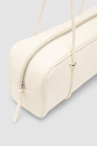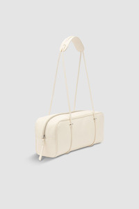 Washed leather baguette bag with oversized soft construction and tubular leather shoulder straps. Features a zip closure and a spacious interior compartment, complemented by a small branded leather patch pocket (credit card size). Finished with micro suede lining. DETAILS - Baguette bag; oversized soft construction - Tubular leather shoulder straps - Zip closure - One big interior compartment - Small interior branded leather patch pocket 100x 60mm (credit card size) - Micro suede lining - Made in Bulgaria SIZE AND FIT - Height: 12,5 cm - Width: 31 cm - Depth: 10 cm - Handle Drop: 27 cm - Strap Length: 67 cm