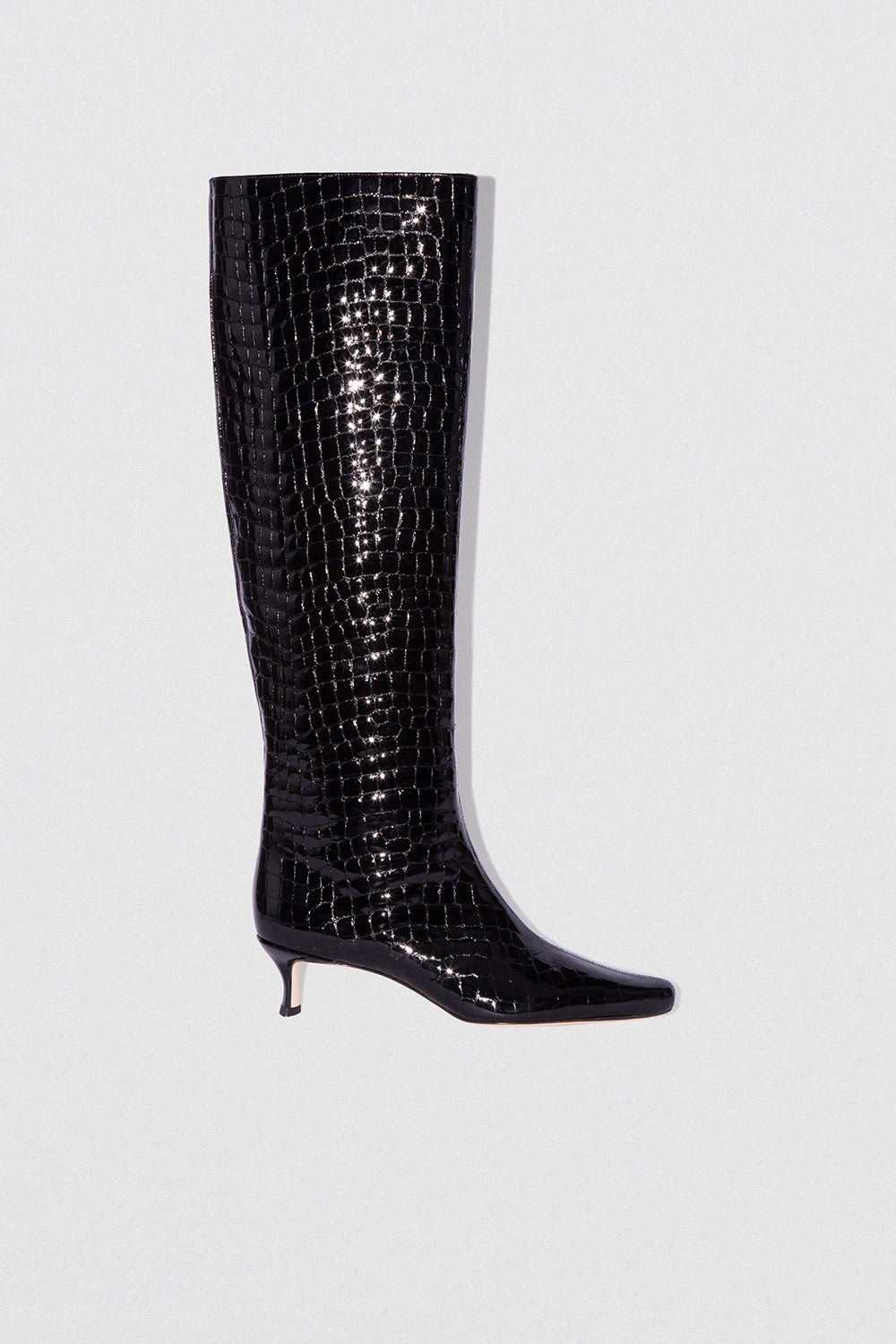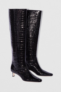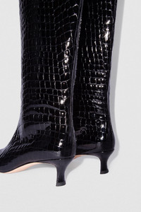 - Leather boot - Crafted in croc-embossed Italian cowhide with a glossy finish - Sculpted covered kitten heel - Heel Height: 5 cm - Almond toe - Pull-on design - Made in Portugal SIZE AND FIT Fits true to size. Italian/European sizing