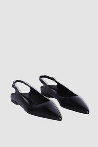 Koyna Black Creased Calf Leather Slingback Flat