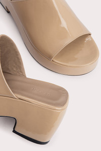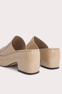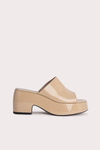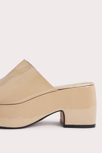 Made from lustrous cowhide leather, the Leroy mule has an exaggerated silhouette shaped with a platform sole and a chunky heel. A rounded open toe completes the design. DETAILS • Cowhide leather • Covered platform and block heel • Heel height: 8 cm • Front platform height: 3.5 cm • Rounded open toe • Made in Portugal CARE At BY FAR we carefully select all materials used for our products. Please handle with care for longer product life. • Avoid overexposure to light, heat and humidity • Avoid contact with rough and/or abrasive surfaces • Do not use solvents and excessive or prolonged rubbing, as this could damage the product • Clean with a soft, dry cloth • Store your BY FAR product in its original dust bag You can find more information at Product Care. SIZE AND FIT Fits true to size. Italian/European sizing