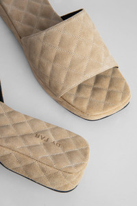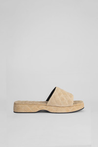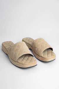Don’t you sometimes wish you could spend the day cosied up in your favourite puffy quilt? And what if you could have that same feeling around your feet all day?! The dream! LILO take the classic clog silhouette to reimagine it as chunky, extra-padded slides. Think padded upper, padded footbed – we can’t wait to sink into to these oh-so-simple and oh-so-irresistible future summer favourites. You’ll be blessing them on your busy summer days for the feeling of walking on a cloud. Team up yours with tailoring or flared jeans and don’t forget the slouchy bag for maximum impact. DETAILS Heel height: 4cm flatform CARE Some colour transference is a natural characteristic of all suede leathers. Our suede is specially treated to minimise this effect, however, it is never completely avoidable. We recommend avoiding wearing the item in humid conditions and against light coloured garments. Clean the leather using a specialist suede brush and without using any creams or other products, even if they are specified as suitable, since they could alter the hand feel and colour of the article. For tougher stains, refer to a specialist cleaning service. Avoid contact with any substance containing alcohol such as perfumes, cosmetics or hand sanitisers, as they can and may result in the discolouring or damaging of your item. When not in use we recommend that you store this product in its protective bag in a cool and dry place. SIZE AND FIT Fits true to size. Italian/European sizing