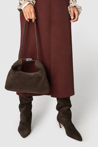 Slouchy suede leather boot with a 6 cm leather covered heel and a relaxed mid-calf pull-on design. Finished with a pointed toe. DETAILS - Slouchy leather boot - Leather-covered heel - Heel Height: 6 cm - Pull-on mid-calf length upper - Pointed toe - Made in Bulgaria SIZE AND FIT Fits true to size. Italian/European sizing.