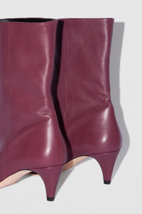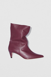 - Slouchy leather boot - Crafted in soft Italian lambskin - Leather-covered conical heel - Heel Height: 6 cm - Pull-on mid-calf length upper - Pointed toe - Made in Bulgaria SIZE AND FIT Fits true to size. Italian/European sizing