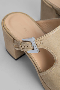 Melba is here to put the “fun” in functional! Crafted in Portugal, these chunky mules put our signature square-toe shape on a platform and a sturdy block heel and are secured with buckles so you can adjust the fit. Created to brighten up your everyday with a full scoop of popping colour options like peony, pistachio, vanilla and scarlet, they invite you to pick your flavour. And we won’t judge if you come back for seconds! Slip yours on with everything from cropped jeans to miniskirts, and be prepared to be blown away by how hot your legs look. DETAILS Heel height: 8 cm (platform 2 cm) CARE Some colour transference is a natural characteristic of all suede leathers. Our suede is specially treated to minimise this effect, however, it is never completely avoidable. We recommend avoiding wearing the item in humid conditions and against light coloured garments. Clean the leather using a specialist suede brush and without using any creams or other products, even if they are specified as suitable, since they could alter the hand feel and colour of the article. For tougher stains, refer to a specialist cleaning service. Avoid contact with any substance containing alcohol such as perfumes, cosmetics or hand sanitisers, as they can and may result in the discolouring or damaging of your item. When not in use we recommend that you store this product in its protective bag in a cool and dry place. SIZE AND FIT Fits true to size. Italian/European sizing