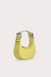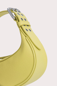 This Mini Soho bag is made of soft Italian cowhide leather. The top-handle style has a distinctive curved silhouette enhanced by the oversized double-progued buckles and multiple eyelets on the adjustable handle. DETAILS • Cowhide leather exterior • Adjustable leather handle • Silver-toned hardware • Zip closure • Fits an iPhone • Cotton lining • Made in Spain CARE At BY FAR we carefully select all materials used for our products. Please handle with care for longer product life. • Avoid overexposure to light, heat and humidity • Avoid contact with rough and/or abrasive surfaces • Do not use solvents and excessive or prolonged rubbing, as this could damage the product • Clean with a soft, dry cloth • Store your BY FAR product in its original dust bag You can find more information at Product Care. SIZE AND FIT • Depth 6.5 cm • Height 10 cm • Width 19 cm • Strap length 45.5 cm • Handle drop 19 cm