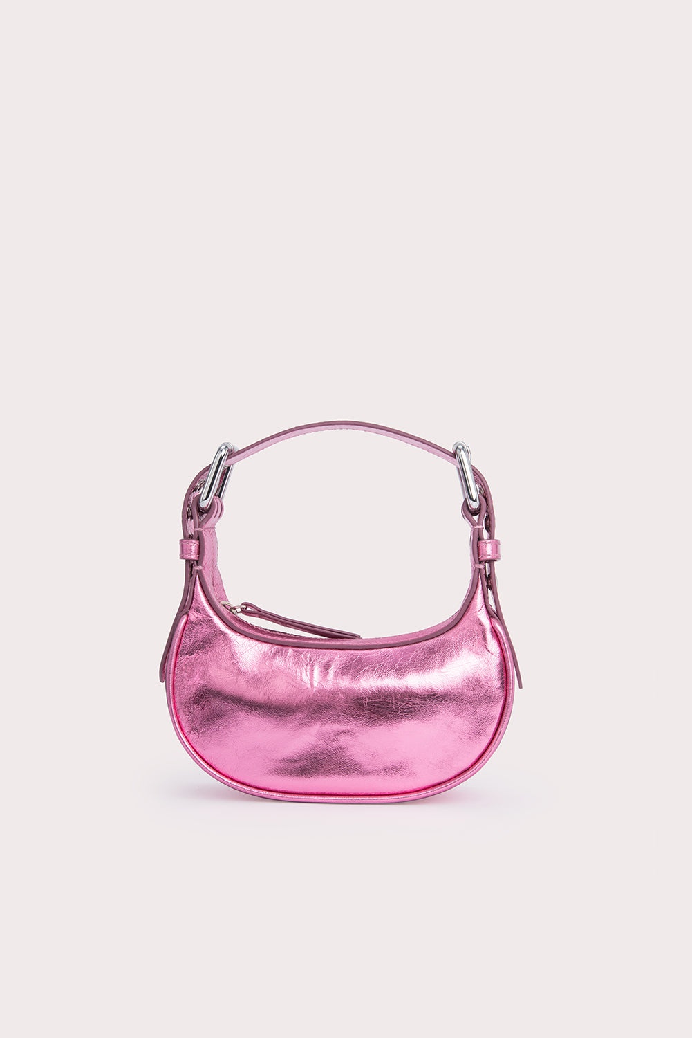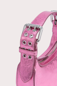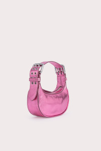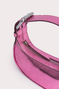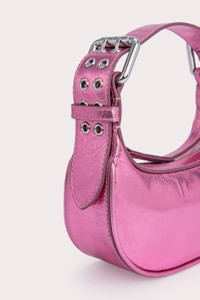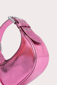 This Mini Soho bag is made of lustrous Italian lambskin. The top-handle style has a distinctive curved silhouette enhanced by the oversized double-progued buckles and multiple eyelets on the adjustable handle. DETAILS • Lambskin leather exterior • Adjustable leather handle • Silver-toned hardware • Zip closure • Fits an iPhone • Cotton lining • Made in Spain CARE At BY FAR we carefully select all materials used for our products. Please handle with care for longer product life. • Avoid overexposure to light, heat and humidity • Avoid contact with rough and/or abrasive surfaces • Do not use solvents and excessive or prolonged rubbing, as this could damage the product • Clean with a soft, dry cloth • Store your BY FAR product in its original dust bag You can find more information at Product Care. SIZE AND FIT • Depth 6.5 cm • Height 10 cm • Width 19 cm • Strap length 45.5 cm • Handle drop 19 cm