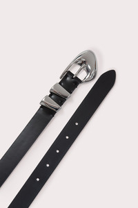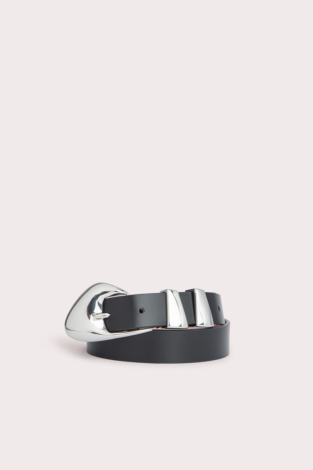 This bold leather belt stands out for its sculpted and polished buckle that gives the accessory an original, conceptual accent. It is made of BY FAR’s signature semi patent leather and can be adjusted to the perfect fit. DETAILS • Cowhide leather • Metal hardware • Perforated holes for an adjustable fit • Made in Bulgaria CARE At BY FAR we carefully select all materials used for our products. Please handle with care for longer product life. • Avoid use in very humid conditions • Do not use solvents and excessive or prolonged rubbing, as this could damage the product • Clean with a soft, dry cloth • Store your BY FAR product in its original dust bag You can find more information at Product Care. SIZE AND FIT XS (75 cm); S (85 cm); M (95 cm); L (105 cm); XL (115 cm) Width: 24.5 mm