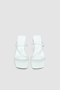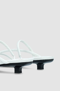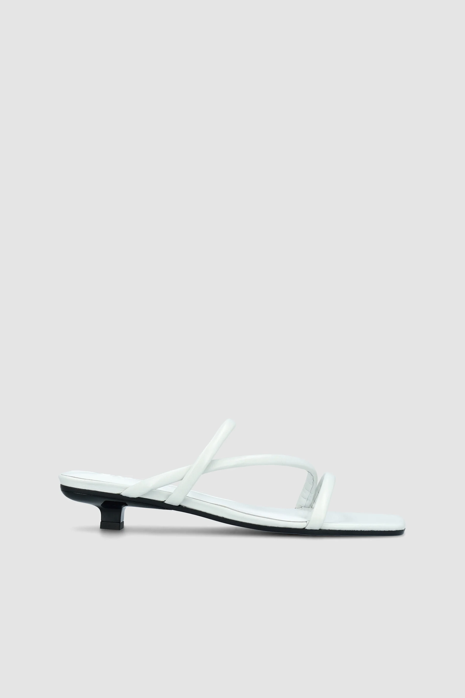Creased calf leather mules with a 3 cm tonal painted kitten heel and tubular leather straps. Designed with a contrast insole, square toe, and square back. Made from LWG-certified leather. DETAILS - Leather mule - Tonal painted kitten heel - Heel Height: 3 cm - Tubular leather straps - Contrast insole - Square toe and back - Made in Bulgaria SIZE AND FIT Fits true to size. Italian/European sizing