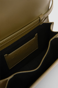 Structured crossbody bag featuring an adjustable and removable long leather strap and a top handle. Can be worn crossbody, as a shoulder bag or top-handle bag. Features a custom metal belt buckle detail at the front and matching hardware. Designed with multiple interior compartments and a small branded leather patch pocket (credit card size), finished with micro suede lining. DETAILS - Structured crossbody bag; flap bag - Adjustable and removable long leather strap - Top handle strap - Option to wear it crossbody, as a shoulder bag or top-handle bag - Custom metal belt buckle detail at the front - Custom metal hardware - Multiple interior compartments - Small interior branded leather patch pocket 100x 60mm (credit card size) - Micro suede lining - Made in Bulgaria SIZE AND FIT - Height: 14,5 cm - Width: 20 cm - Depth: 5,5 cm - Handle Drop: 3,2 cm - Strap Length: 130 cm (longest size)