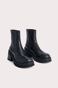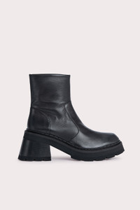A high vamp and elegant seaming characterize this boldly proportioned boot. The maxi rubber sole with flared block heel imparts a timeless aesthetic that enhances the polished allure of the upper. Crafted in soft Nappa leather, the style features a side zipper for a smooth fit. DETAILS • Leather ankle boots • Rubber platform with block heel • Heel height: 7.5 cm (platform: 2.5 cm) • Topstitching • Side-zip closure • Round toe Made in Portugal