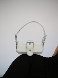 Structured creased calf leather shoulder bag with an adjustable handle, detachable crossbody strap, and flap closure with a magnetic stud. Finished with silver-toned hardware, a detachable tag, an inside zip pocket, and micro suede lining. The style is made from LWG certified leather. DETAILS - Structured leather shoulder bag - Adjustable wide leather handle - Additional leather crossbody strap - Flap closure with magnetic stud - Tonal leather trim - Silver-toned buckles and eyelets - Detachable leather tag - Inside zip pocket - Micro suede lining - Made in Bulgaria SIZE AND FIT - Width: 24 cm - Height: 14 cm - Depth: 6 cm - Handle length: 58 cm - Handle drop: 22 cm - Long strap length: 117 cm - Long strap drop: 54 cm