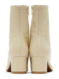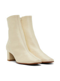 Ankle-high buffed leather boots in off-white. · Zip closure at inner side · Goatskin suede lining · Covered block heel with rubber injection · Leather sole · Heel: H2 in Supplier color: White Upper: leather. Sole: leather, rubber. Made in Bulgaria 232289F113000