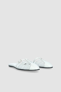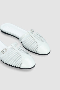 Creased calf leather mules with a low stacked leather heel and delicate buckle-fastened straps. Designed with a round toe. Made from LWG-certified leather. DETAILS - Leather mule - Low stacked leather block heel - Thin straps with buckle fastening - Round toe - Made in Bulgaria SIZE AND FIT Fits true to size. Italian/European sizing