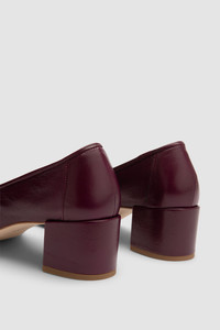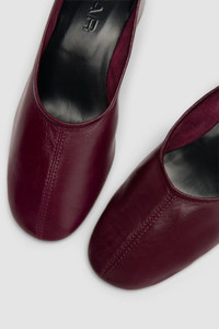 Soft creased leather ballet-style pump with a glove-like, unlined construction and high topline with soft upper. Features a 4.5cm leather-covered block heel, delicate piping, central seam, and a round toeline. Finished with a leather sole. DETAILS - Leather ballet-style pump; day shoe; soft walking shoe - Super soft glove-like construction - Unlined - Leather-covered block heel - Heel height: 4,5cm - High topline; soft upper - Delicate piping - Central seam - Round toeline - Leather sole - Made in Bulgaria SIZE AND FIT Glove fit. Please ensure that at first wear the style fits tightly around the foot. The fit will loosen and mould to your foot within the first couple of wears. For narrow feet, you may choose to size down. Fits true to size. Italian/European sizing