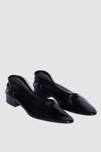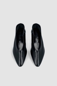 Creased leather pump with a low covered block heel (2.5 cm), delicate piping, and a rounded toe. Made from LWG-certified leather. DETAILS - Leather pumps - Crafted from soft Italian lambskin with a glossy finish - Low square block heel - Heel height: 2,5 cm - Delicate piping - Almond toe - Made in Bulgaria SIZE AND FIT Narrow fit - true to size. Italian/European sizing.