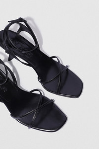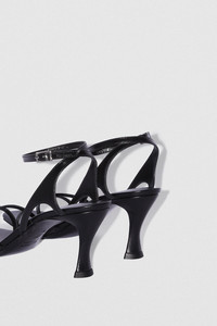 Creased calf leather sandals with a 7.5 cm covered sculpted heel and thin leather toe straps. Finished with a buckle fastening and round toe. Made from LWG-certified leather. DETAILS - Leather sandal - Covered sculpted heel - Heel height: 7.5 cm - Buckle fastening - Thin leather toe straps - Round toe - Made in Bulgaria SIZE AND FIT Fits true to size. Italian/European sizing