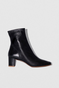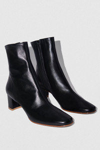 - Leather ankle boots - Crafted in smooth Italian cowhide - Leather-covered block heel - Heel height: 5 cm - Side zip closure - Rounded toe - Made in Bulgaria SIZE AND FIT Fits big to size. Take one size smaller than normal. Italian/European sizing.