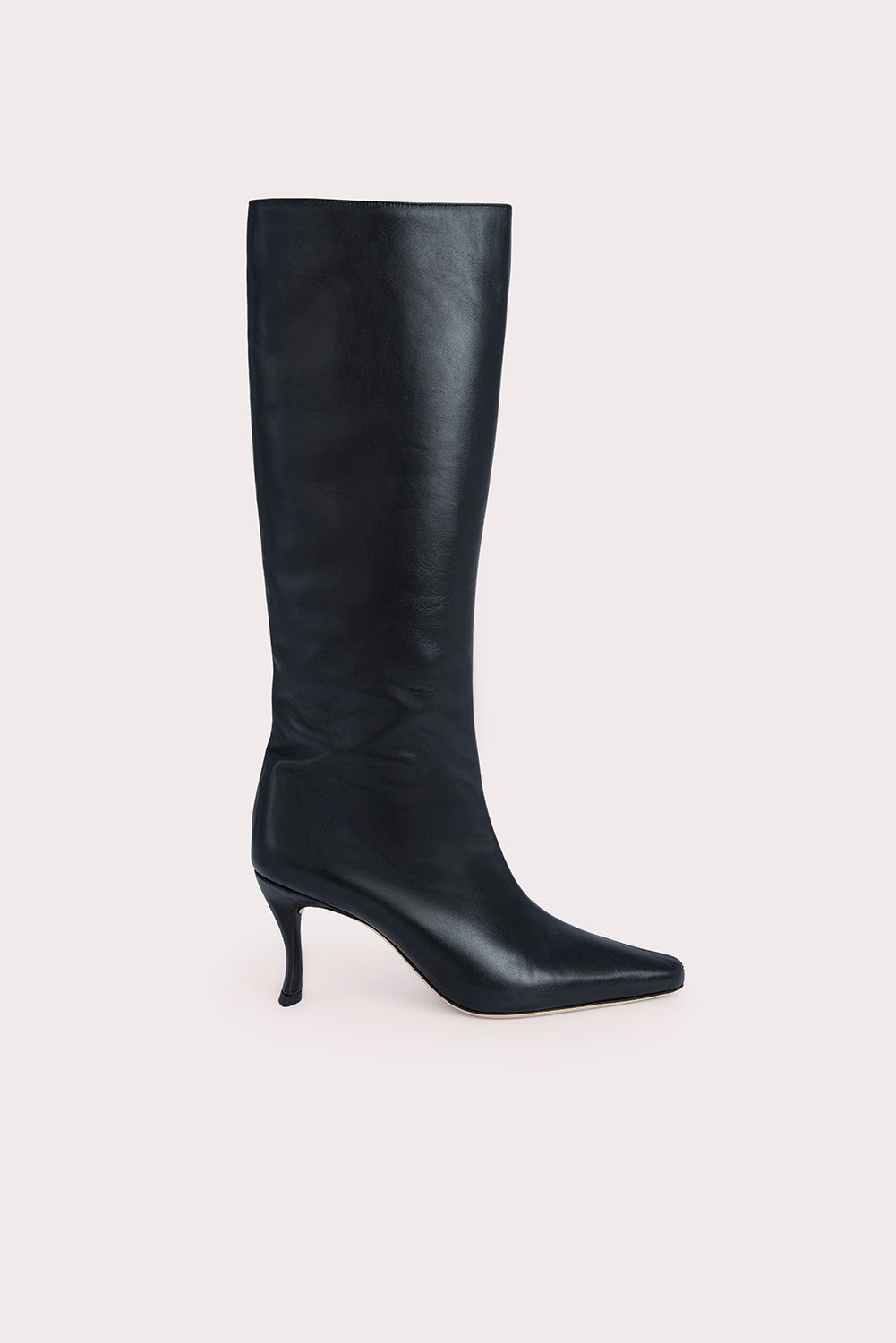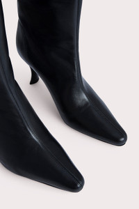 - Leather knee-high boots - Crafted in smooth Italian cowhide - Angular heels, covered in leather - Heel Height: 8 cm - Almond toes - Cushioned footbed - Pull-on design - Made in Portugal SIZE AND FIT Fits true to size. Italian/European sizing