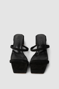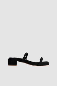 Cowhide leather slip-on mule with two slim leather straps, square toe, and a 3.5 cm custom-made sculpted block heel covered in leather. DETAILS - Leather slip-on mule - Custom-made sculptured block heel, covered with leather - Heel height: 3,5 cm - Two slim leather straps - Square toe - Made in Portugal SIZE AND FIT Fits true to size. Italian/European sizing.