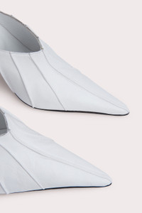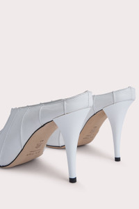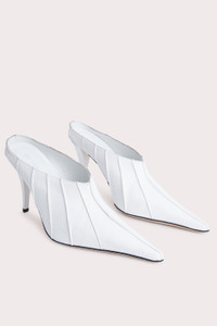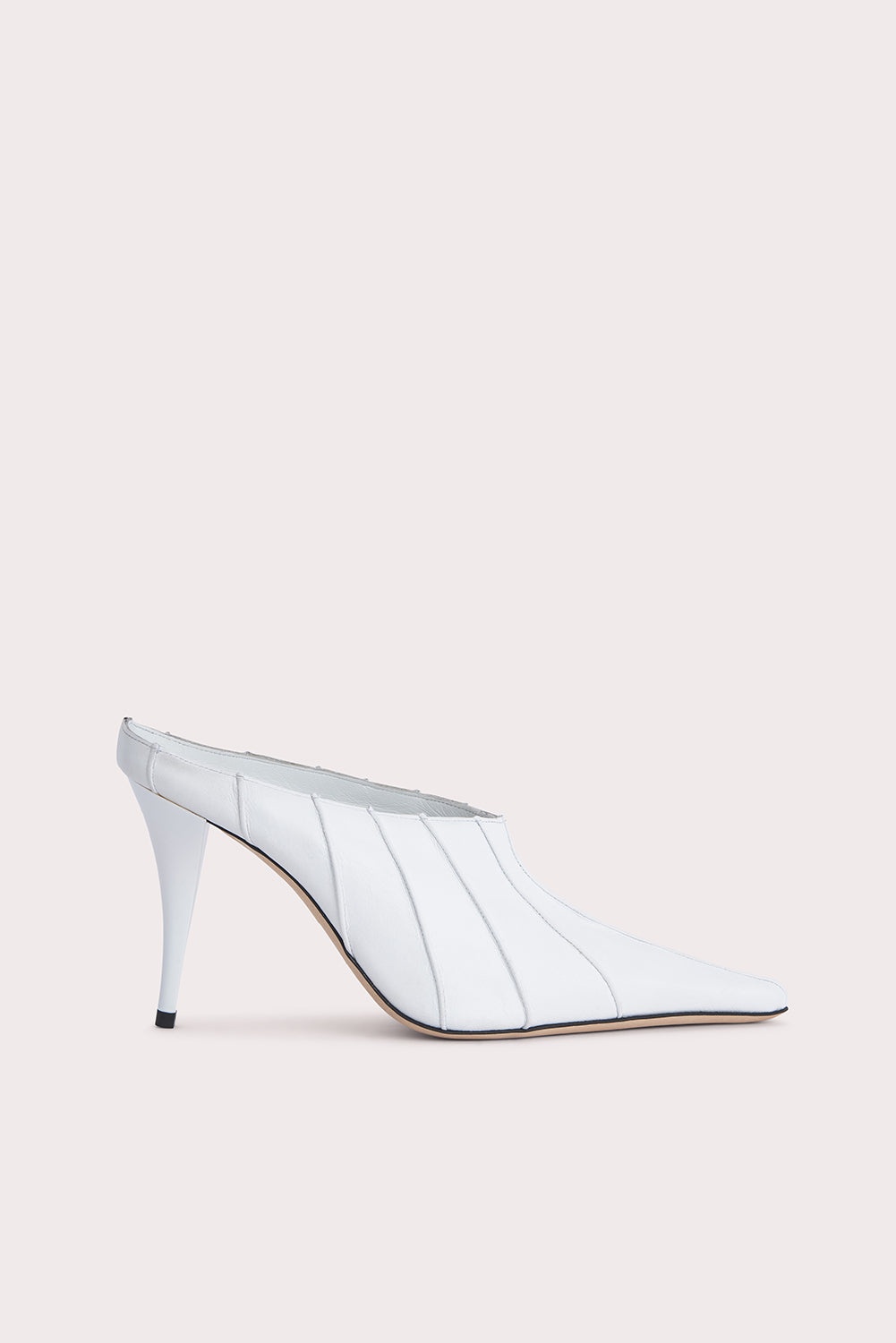 The Trish mule has been made from supple cowhide leather with parallel decorative seams, which envelop the upper and add texture to an otherwise minimal style. Each seam is individually folded and stitched following a precise pattern placement. Shaped to an elongated pointed toe, the style is set on a 100 mm painted stiletto. DETAILS • Cowhide leather • Painted heel • Heel height: 10 cm • Decorative seams • Pointed toe • Made in Portugal CARE At BY FAR we carefully select all materials used for our products. Please handle with care for longer product life. • Avoid overexposure to light, heat and humidity • Avoid contact with rough and/or abrasive surfaces • Do not use solvents and excessive or prolonged rubbing, as this could damage the product • Clean with a soft, dry cloth • Store your BY FAR product in its original dust bag You can find more information at Product Care. SIZE AND FIT Fits true to size. Italian/European sizing
